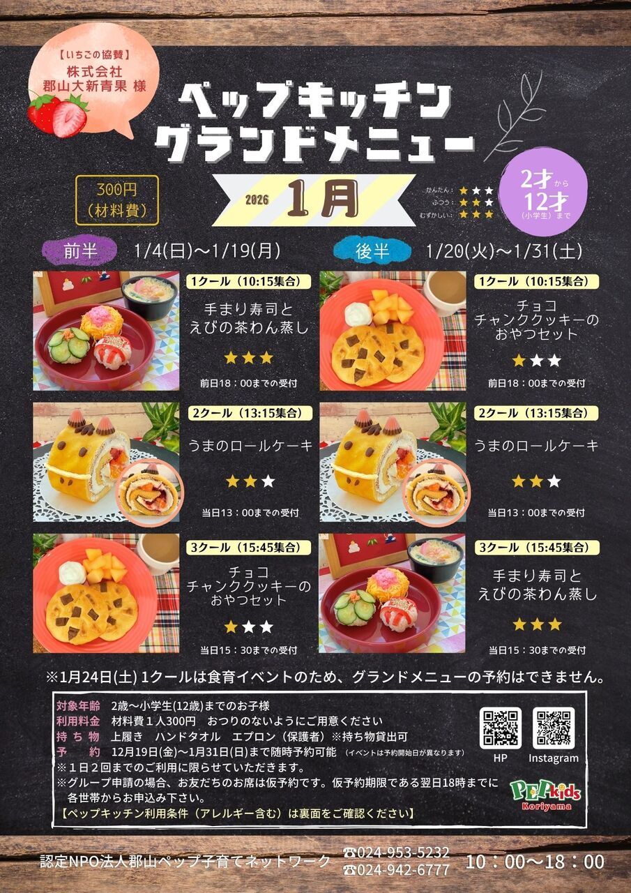 ペップキッズでお料理体験 <1月グランドメニュー> 1月前半 1/4(日)~1/19(月) 【第1クール 10:15…