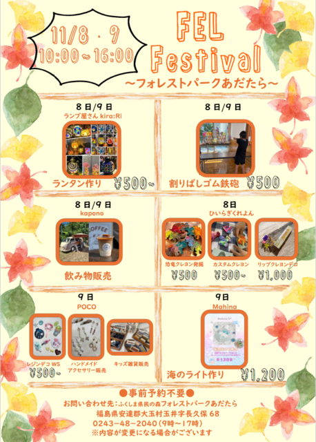 秋の森林でのんびりした時間を過ごしませんか? 親子で楽しめる【ワークショップ】 手作りの温もりがうれしい【雑貨販売】 …