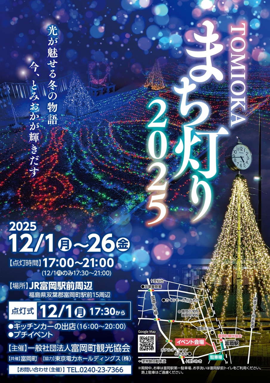富岡駅前に冬を鮮やかに彩るイルミネーションが点灯します。 色とりどりに装飾されたクリスマスツリーなどを是非ご覧くださ…