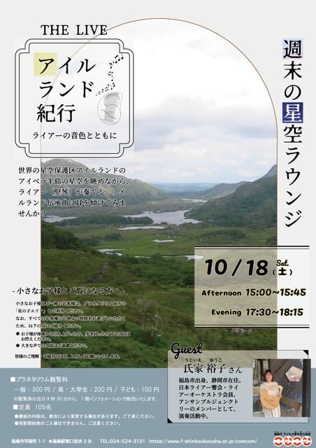 世界の星空保護区アイルランドのアイベラ半島の星空を眺めながら、ライアー(堅琴)が奏でる、アイルランドの伝承曲に耳を傾け…