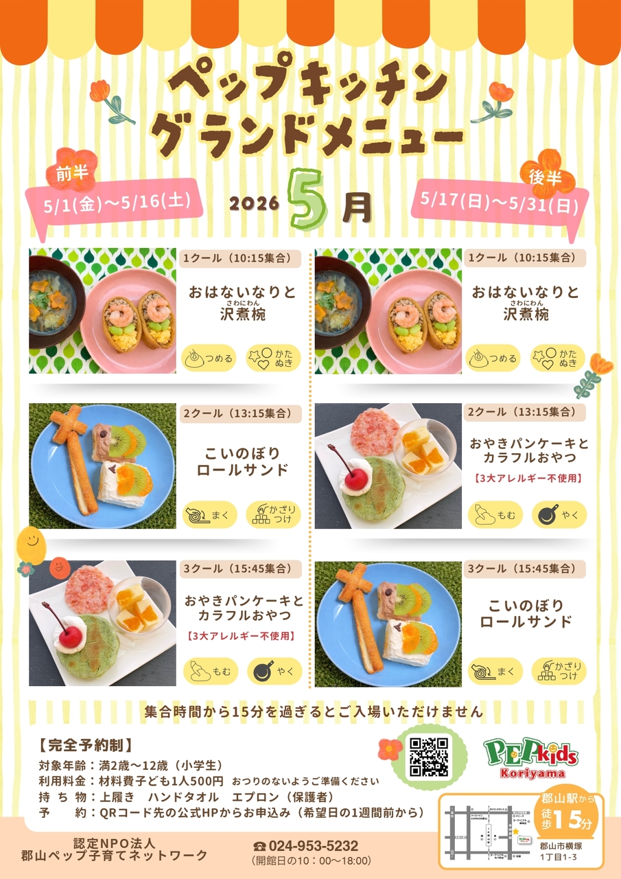 ペップキッズでお料理体験 ※2026年4月1日より予約サイトからの"完全予約制"となります。 公式…