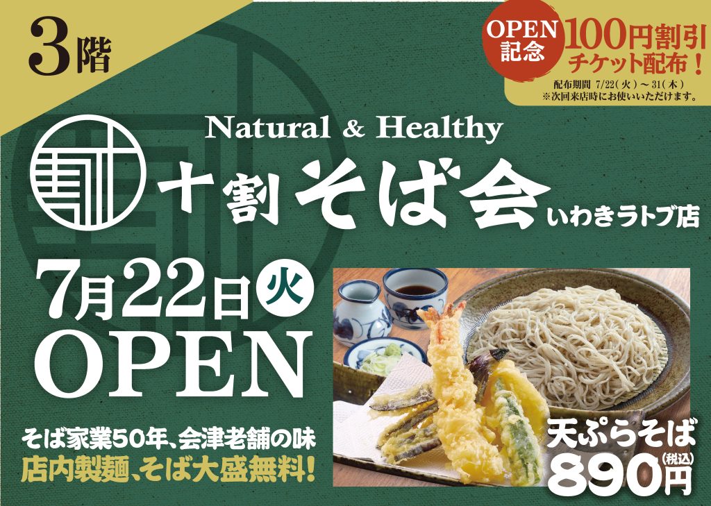 7月22日(火)3階に「十割そば会」OPEN!!