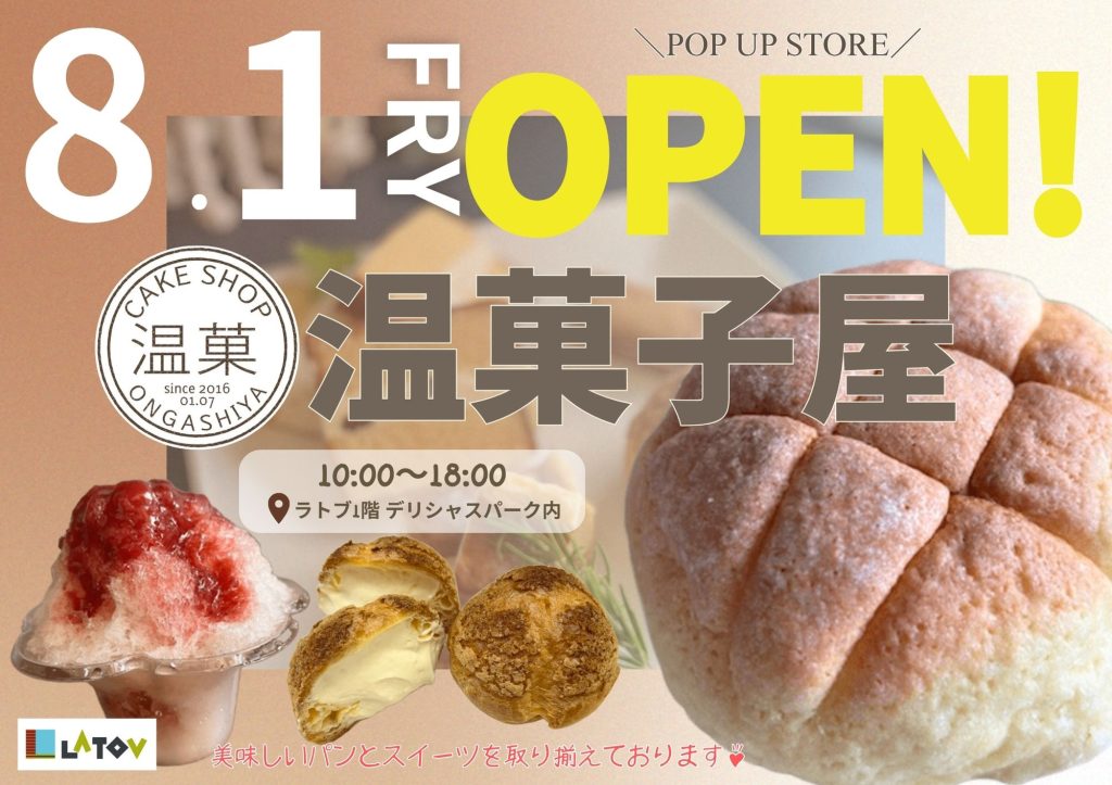 8月1日(金)1階デリシャスパーク内に「温菓子屋」OPEN!!