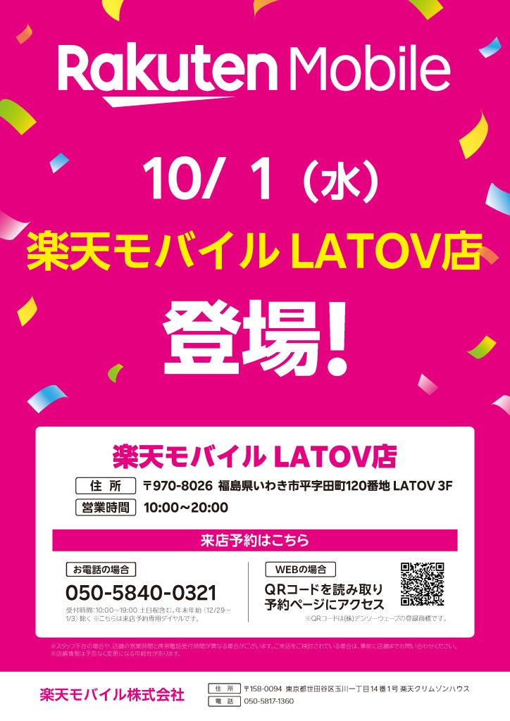 「楽天モバイル」がラトブ3階に10月1日(水)OPEN!!