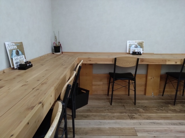今まで海鮮丼などが食べられたお店の後に新しくできたお店です。店内に入るとカウンターで注文をして、料金を支払ってから席に着きます。今回は、タルタル唐揚げ定食をいただきました。注文から5分かからずに料理の到着です。唐揚げは、握りこぶし程度の大きさのものが3個あり、それぞれ半分にカットされ、たっぷりとタルタルソースがかけられています。衣は熱々で中はとってもジューシーでした。付け合わせの野菜も大盛で食べ応えがありました。食材は地元産を使っているらしくとても新鮮です。