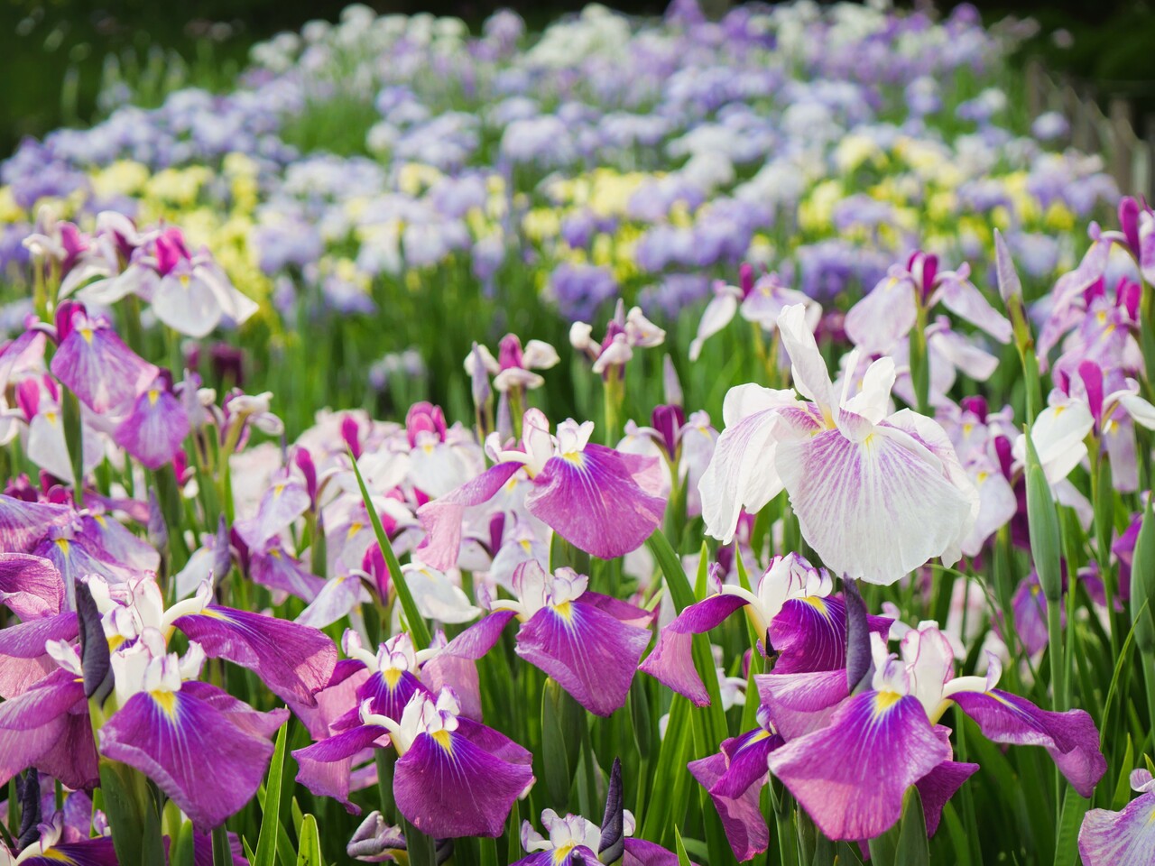 伊佐須美神社の鳥居の前にある回遊式の庭園。池には鯉が気持ち良さそうに泳いでいます。毎年、6月中旬から7月上旬頃にかけ約150種ものあやめが咲き誇ります。数回行きましたが、あやめの綺麗さは勿論、鯉の柄を眺めたり餌やりしたりが何気に楽しい!