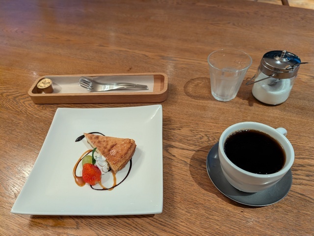 郡山市立美術館様の「巨匠ハインツ・ヴェルナーの描いた物語(メルヘン)現代マイセンの磁器芸術」へ車椅子の娘とお伺いしました。「ふくしまアートスタンプラリー」「アートウォーキングラリー」に参加中でポイント場所であるjuju130CAFE様のスタンプを取得して嬉しいです。16時半頃美術館様の方から伺いますと、お店の方がドアを開けてくださいました。企画展とのコラボ「マイセンのコーヒー」は、頼まねばですね~(*ノω・*)テヘ本日のゲーキは2種類の中から「焦がしキャラメルのチーズケ―キ」を注文しました✨️娘と外の景色を眺めていると薄暗くなってきたので照明が灯って綺麗です。提供して頂いたマイセンのコーヒーの香り、ケーキの飾り付けにウットリ。焦がしたキャラメルはカリカリ且つチーズケ―キはしっとりで美味しいです。外はすっかり暗くなって益々よい雰囲気で美味しさが倍増しました。ありがとうございます。