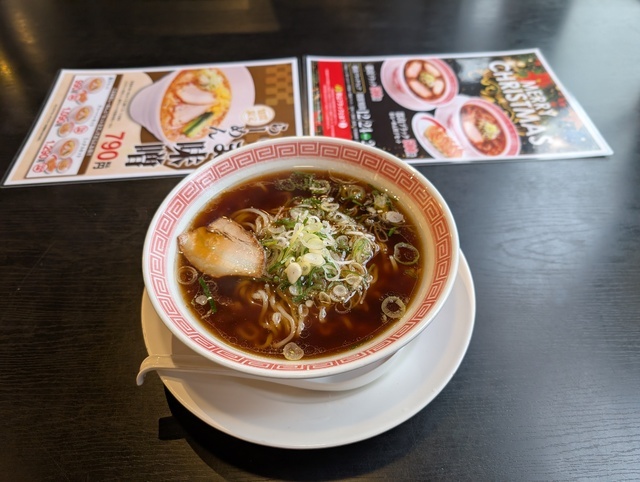 SNSで郡山ブラックフェアのお知らせを受けて、楽しみにしていました。クリスマスの24、25日の2日間はワンコインでご提供とのこと。私は「郡山ブラック素らーめん餃子セット」をタブレットの画面から注文しました。郡山ブラック素らーめんのスープは熱々で濃すぎず絶妙な味わいです。これまた熱々の餃子を酢と醤油、ラー油に浸けて頂きました。美味しくて幸せ〜。素敵なクリスマスイブになりました。