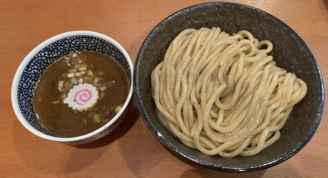 美味しいつけ麺ならココ!とおすすめできるのがえなみさん。昼時はいつも混雑している人気店。今回は魚介豚骨つけめん1,000円を選択。甘みと濃厚な豚骨、ざらっとした魚粉スープがたまりません。麺は並で500gと食べ応えも抜群でした。ちなみにお魚のつけめんは醤油ベースが強い濃い目の味なため、好みは分かれるかもしれません。