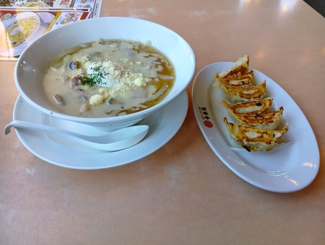 知人の情報で期間限定メニューがうまいと聞いて、用足しの帰りに立ち寄った。今までにない斬新なラーメンそれは「カルボらーめん」。カルボナーラソース+醤油スープがこんなに合うとは、それに温泉玉子をくずして混ぜてもう美味いという言葉しか出ない。スープを飲み干さなければもったいない一杯で絶対おススメ。