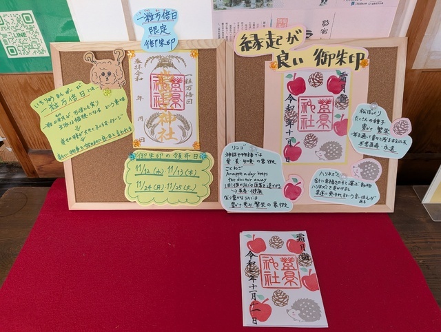 11/24(月)振替休日の15時頃お伺いすると、宮司様が境内の枝等を集めて片付けをされているところでしたのでお声掛けをして社務所で月替りの御朱印を拝受しました。先月妻恋稲荷神社様の赤い鳥居を塗り修しますとお話して下さいましたが、フォロアーさんのお参りの記録から輝く美しい朱色の鳥居を拝見していました。私も実際に目にして鳥居を潜り身代り大国様、お稲荷様に手を合わせることができて嬉しいです。また、三山大神様への渡し道も綺麗に塗装して整備していることが分かりました。本日の穏やかな気候と相まって感謝の気持ちでいっぱいになりました。 (投稿:2025/11/30 掲載:2025/12/02)