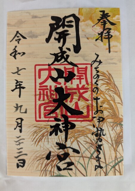 あさかね神社さんの御朱印カレンダーを拝見して「天一天上(てんいちてんじょう)」とありましたので、SNSで調べたところ、とても縁起が良かったり、何処へお出掛けしても良い日で掃除をするようにともありましたので午前中に要所要所をお掃除しました。それから14時頃お伺いしました。娘は機嫌は良いのですが、体調管理のためお留守。涼しくて気持ちが良いです。社務所にて、いつも温かいお言葉をかけて頂いて嬉しいです。御朱印帳に9月の花御朱印で「桔梗」にホトカミサポータ―特典のホトカミちゃんを入れて頂きました。先月に引き続き、ホトカミユーザーのkazuさんより素敵な「角あて」を頂いてきました。大切に使わせて頂きます。ありがとうございます✨ (投稿:2025/09/21 掲載:2025/09/29)