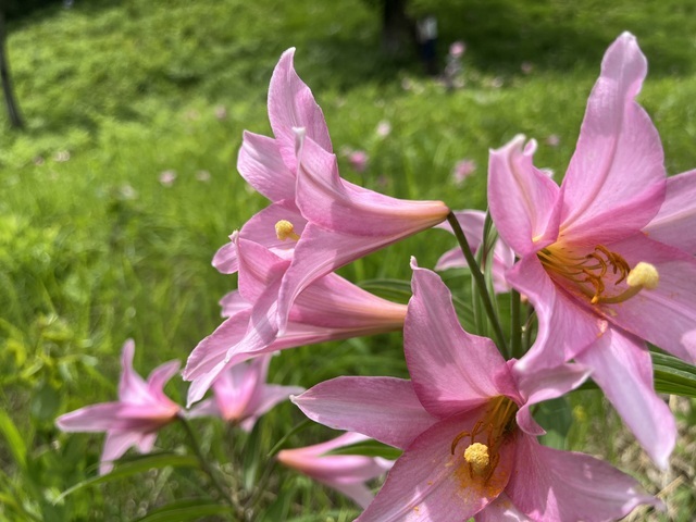 日本一のヒメサユリ群生を目指して行きました。今年(2024年)は、暖冬のため例年より早く咲き始めたそう。また、積雪も例年4mのところ2mと少なく、ヒメサユリにとっては水不足で、生育が芳しくなく背丈が低く蕨に埋もれ気味…。とは、言っても緑の中に鮮やかなピンクの花が映え鮮やかでした。自生で地域も限定されており、準絶滅危惧のうえ、種から花をつけるまで最低6年かかるそうで、より一層希少価値を感じました。 (投稿:2024/06/22 掲載:2026/03/05)