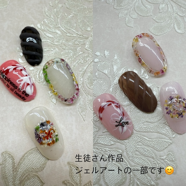 mai さん (女性/いわき市/30代/Lv.1)私はネイリストに長年興味があり、今からでは遅いかな???と思ったけど40歳前にして勇気を出して爪美人ネイルスクールに入学しました!こちらの先生は限られた時間の中で、その人の長所短所を物凄いスピードで見極め、的確にアドバイスをしてくれます。決して妥協はしませんので良い所は凄く褒めてくれます!悪い所は何回も練習させてくれます。私の場合、良く出来た時、先生も自分の事のように喜び褒めてくれたので、それが頑張る力となりました!色々な試験対策にしても、ご自身の経験を活かして事細かく教えてくれました。合格した時泣いて喜び合ったのは今でも心に残っています。居心地よくみんなアットホームな感じも素敵で、本当にここを選んで良かったです!入学に迷われたら絶対こちらをお勧めします!長い間本当にありがとうございました! (投稿:2024/10/04 掲載:2024/10/08)