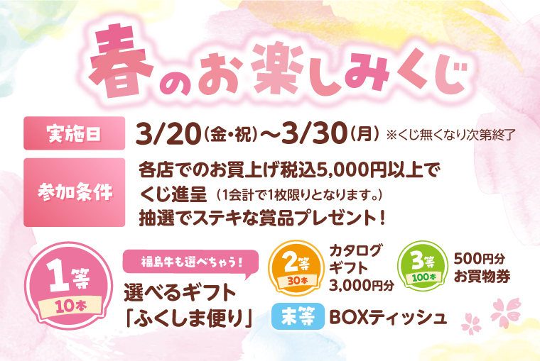 3/20(金・祝)~3/30(月)の期間はお楽しみくじ開催!