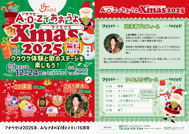 アオウゼであおうよクリスマス2025 ~ワクワク体験と歌のステージを楽しもう!~