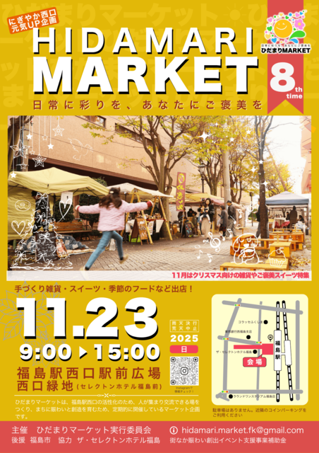 ひだまりマーケットは、福島駅西口が“まちのリビング”のように生まれ変わる、1日限りの屋外マルシェです。