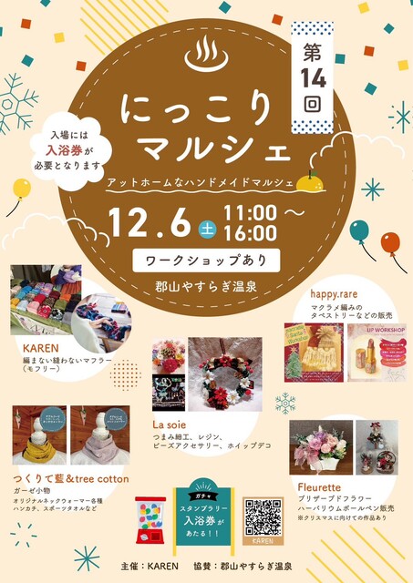 アットホームなハンドメイドマルシェが、郡山やすらぎ温泉で開催。