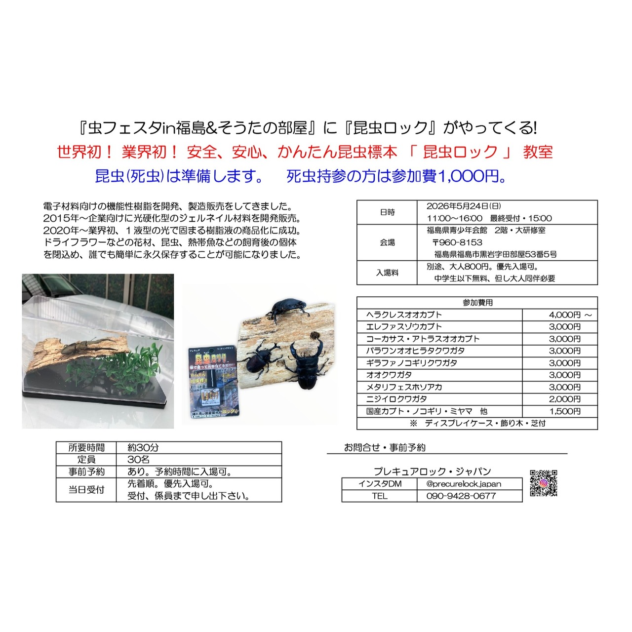 世界初!安全・安心・かんたん。 業界初! 「 昆虫ロック 」 が 福島 にやってくる。 「むしフェスタin福島」&a…