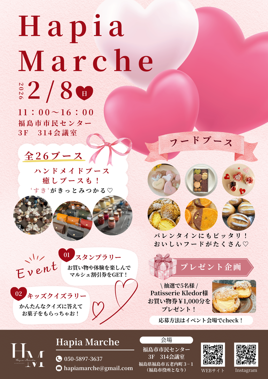 福島市市民センターで、 バレンタインシーズンにぴったりな ハンドメイドイベント「Hapia Marche」を開催します…