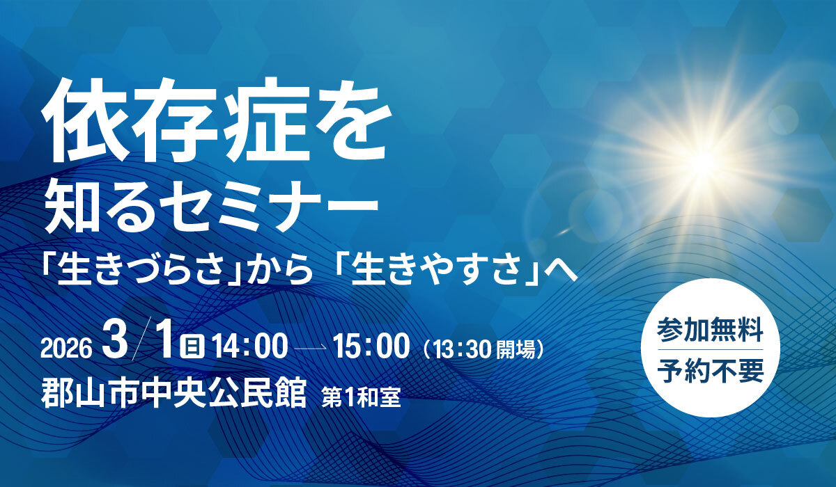 このセミナーは、依存症当事者やご家族、さらに医療・福祉・行政等の分野で依存症に関わる方にご参加いただきたい内容です。 …