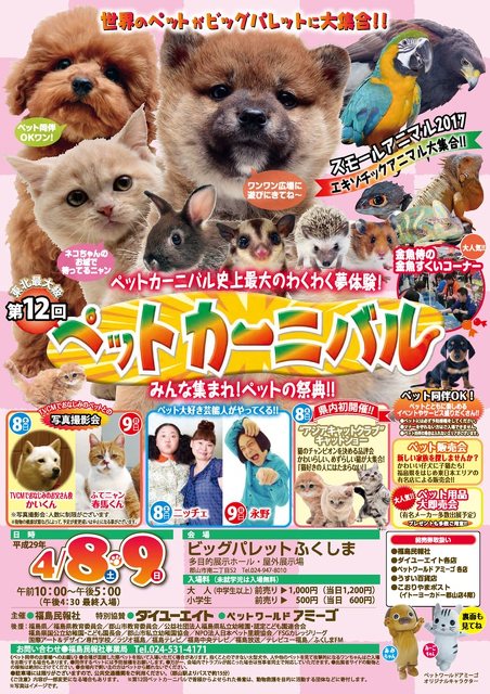 4月8日、9日の2日間、郡山の「ビッグパレットふくしま」におきまして、「第12回ペットカーニバル」が開催されます。 世…