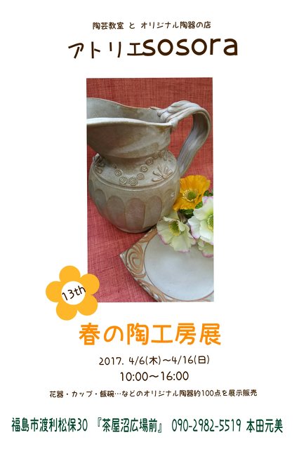 陶芸教室 と オリジナル陶器の店 アトリエsosora は 花見山のほど近く 『茶屋沼広場』の前にあり この時期 広場…