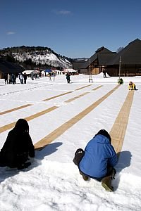 この時期限定のからむし織雪ざらしの実演や、伝統行事団子さしのほか、スノーモービル体験など雪に親しむ遊びも満載。