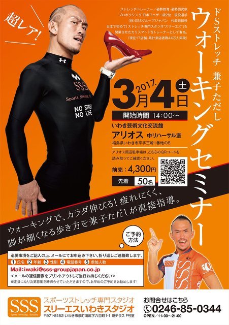 ドSストレッチ兼子ただし ウォーキングセミナー開催! テレビでお馴染み、ドSストレッチの兼子ただしが正しい歩き方を直接…