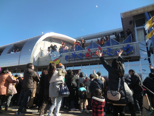 東西南北中央鬼門病門へ追儺の破魔矢が放たれた後、裃を著用した年男年女130名が特設舞台上から約2万袋の福豆を撒きます。…