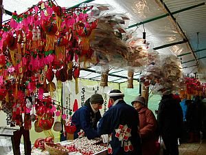 だるま、起き上がり小法師、風車などの縁起物を売る物や、焼…