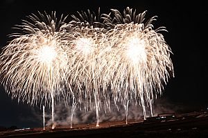 地元伝統行事どんと焼きの炎が立ち上がり、うねめ太鼓の響きが盛り上げる中、冬の透きとおった夜空に花火が打ち上げられます。…