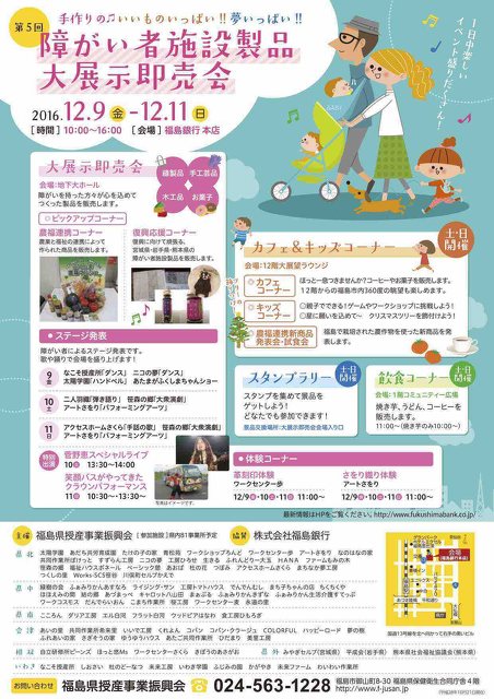障がい者を持った方々が心を込めて作った製品を販売します。福島県内から81事業所が参加する、県内最大規模の展示即売会です…