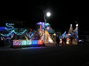 移出張所付近の県道50号沿いにイルミネーションを施し、行きかう人の目を楽しませます。