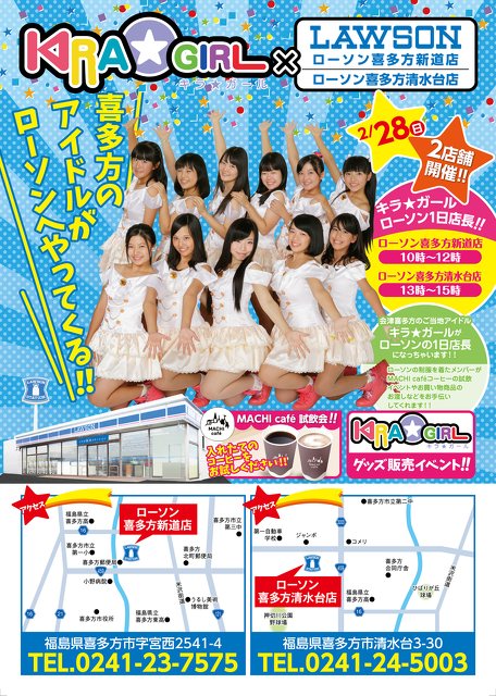 会津喜多方のご当地アイドル『キラ☆ガール』がローソンの一日店長になっちゃいます! ローソンの制服を着たメンバーがコーヒ…