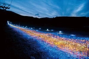 あだたら高原スキー場に200,000万球のイルミネーションが灯り、 幻想的な光景を生み出します。