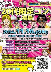 男女20~29才限定の100対100街コンを、ついに福島で開催します!! 席替え&連絡先交換タイムに空き店ナビ…