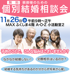 10月に開催して好評だった親御様向け個別結婚相談会を11月にも開催します。 孫の顔を早く見たい、自分の子供は結婚でき…