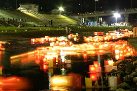 幻想的な光の競演が楽しめます。美しい灯籠流しの背景で、広瀬川に映る打ち上げ花火は必見です。約5,000発の花火が打ち上…