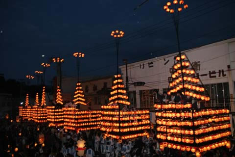 日本3大ちょうちん祭りの一つです。 350年の伝統がある例大祭 4日の夜の7町合同引き廻しがメインです