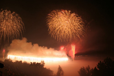 本町から天神町までの目抜き通りを中心に各町が趣向をこらした歩行者天国を催し、およそ4,000発の花火が打ち上げられる花…