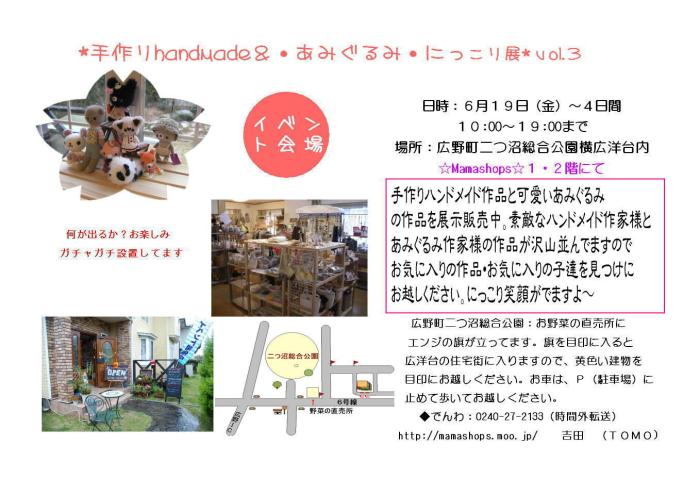 手作りハンドメイド&あみぐるみ展Vol.3☆Mamashops☆ イベント会場:☆Mamashops☆お店内…