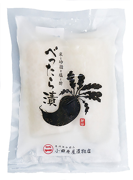 歯切れの良さとさっぱりとした漬け上がりが特徴の「べったら漬」。長年親しまれている小田原屋の看板商品です。