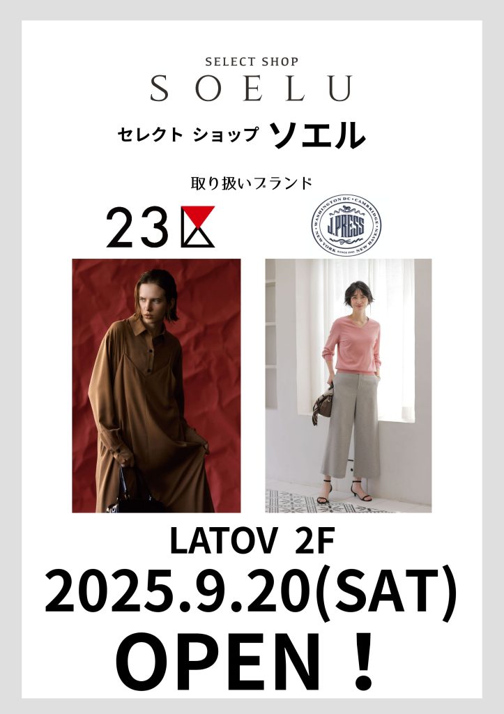 セレクトショップ「SOELU(ソエル)」がラトブ2階に9月20日(土)OPEN!!