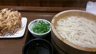 休日の夕御飯で利用しました。時間帯も混んでいる時に利用したのでほとんどおにぎり類は売り切れていましたが…(泣) てんぷらはばっちり残っていました! 野菜かき揚げ以前も食べて、その大きさにびっくりしましたが今回も食べました。でも一人で食べる分には多いので…二人で食べて丁度かな?と思います。 衣がサクサクなのも美味しさが引き立ちますね! 手頃な値段で本場の讃岐うどんが食べれますよー!