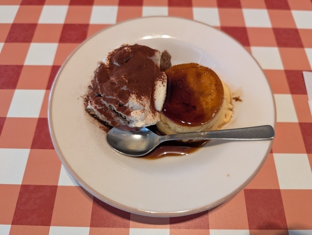 13時頃友達と伺いました。席に案内して頂き、スマホのカメラでQRコードを読み取り、人数を入れてメニュー表の番号を入れてセルフオーダ―をします。友達はランチタイム限定のメニュータラコソースシシリー風スパゲッティサラダ付き、私はディアボラ風ハンバーグをお互いにセットのドリンクバーをつけて注文しました。食後は二人でプリンとティラミスクラシコの盛合わせを追加注文。甘さもちょうど良いです。美味しく頂きました〜。お会計もスマホ画面のバーコ―ドを読み取らせてお支払いをしました。