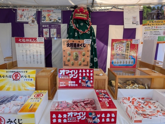 神社様のホームぺージやInstagramでお参りされた方の投稿を拝見していましたが、身近な方も「お参りに行って来ましたよ〜。」とのお話を伺い、楽しみに初詣をさせて頂きました。第二駐車場から臨む弁天池はうっすら氷が張っているようでした。WAKUWAKUしながら茅の輪潜りをして、いざ〜参らん。社務所へお声掛けをすると、限定オマイリマンシール付きの限定御朱印はなくなりましたが、御朱印帳へ直書きしてくださる限定御朱印をお願いしました。金子美早紀様の素敵な画による挿し紙(当て紙)と通常版のオマイリマンシールが付いています。神様へ手を合わせてご挨拶をして神聖な空気に浸ります。オマイリマンおみくじを引くと「建速須佐之男命」様のシール付きで大吉でした。境内初のレトロ市&フリーマーケットが2月〜10月まで毎月第1日曜日に開催するそうです。WAKUWAKU〜(*´ω`*)