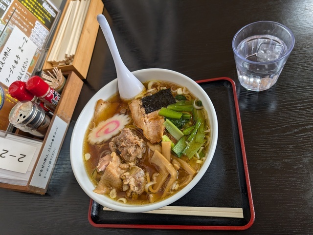 美味しいと評判の金丸本店様へランチをしに参りました。お食事をした方のInstagramを拝見して、お店の前の駐車場の他に、(3軒先消防屯所隣の)「本宮市営中條南駐車場」も利用できるのだと確認できました。入店すると、2階のお席をどうぞと案内して頂きました。暖かい和室にて靴を脱いでテーブル席に座りました。お部屋の内線からテーブル番号を伝え、「金丸本店中華そば(醤油味)豚チャーシュー入り」を注文。鶏肉、チャーシューはホロホロで柔らかく、透明なスープとちぢれ麺を美味しく頂きました。とても嬉しかったです。