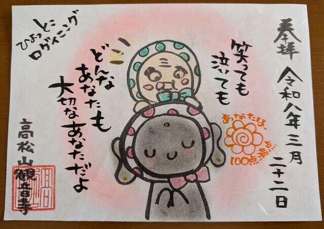 まだまだ風が冷たいかな〜と思っていましたが、季節のお花がチラホラと見受けられて漸く春を感じています。あさかね神社様のカレンダーを拝見すると一粒万倍日で直書きの日です。勇んで社務所にお声掛けをしました。桃の花を散りばめた片面の御朱印にホトカミサポーター特典のホトカミちゃんを入れてのものと、春詣の御朱印はおやゆび姫風のはなちゃん達が可愛い御朱印を御朱印帳に直書きして頂きました。神様に手を合わせて近況をご報告。ヤワなハートの私ですが、少しでも粘り強く…新年度に向けて努めたいです。 (投稿:2026/03/28 掲載:2026/03/31)