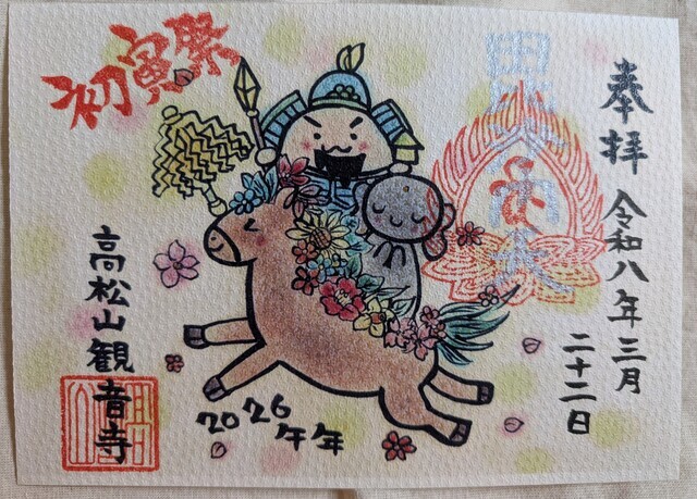 3月に入り、おかげさまで忙しくお仕事をさせて頂いています。世界情勢では緊迫した状況が続き、ガソリンが高騰する前に給油する方で長い列をなしたりしたそうで、東日本大震災の時も同じような息苦しさを感じたことが蘇ってきました。それでも衣食住が変わらず送れていることがどれだけ尊いものなのかと思う毎日です。楽しみにしていたお参りをして社務所にてLINEお友達で「参拝の証」のスタンプを取得したり、御朱印帳に「縁起の良い御朱印」の直書きを拝受。花手水に心が癒されたり、可愛い水仙の花等が咲いていたので近寄って撮影をしました。「戦国武将編カ―ドみくじ」を引くと「豊臣秀吉公」がキター(゚∀゚)!!戦国時代に生きたご先祖様達に寄り添うと、私の悩みなんて吹けば飛ぶように小さいもの…。そのように思うと、生きやすくなっている私ですが、「末吉」のメッセージで有難くて気持ちが引き締まりました。ありがとうございました。 (投稿:2026/03/28 掲載:2026/03/31)